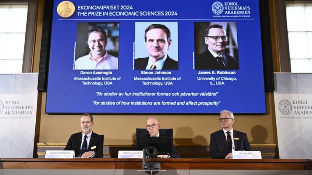 Los tres economistas “han demostrado la importancia de las instituciones sociales para la prosperidad de un país”, indicó el comité del Nobel de la Academia Sueca de Ciencias en el anuncio en Estocolmo.