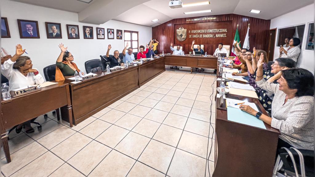 Bahía de Banderas, Nay., 16 de noviembre de 2023.- La mañana de este jueves se llevó a cabo la sesión del Cabildo número 49, en la que los ediles, junto con el síndico y la presidente municipal de Bahía de Banderas, Mirtha Villalvazo nombraron a cuatro nuevos titulares de distintas dependencias y además se autorizó un subsidio para algunos conceptos municipales por el Buen Fin.