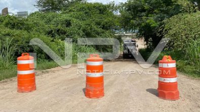 Fue este jueves por la mañana aproximadamente a las 11:45 horas, cuando los oficiales de la Policía Vial de la Subdirección de Tránsito Municipal de Bahía de Banderas, llegaron y cerraron el acceso con patrullas y luego con conos, hasta cerca de las 5 de la tarde, donde estuvieron parados los volteos que trabajan en sus obras de movimiento de tierras en la desembocadura del río Ameca.