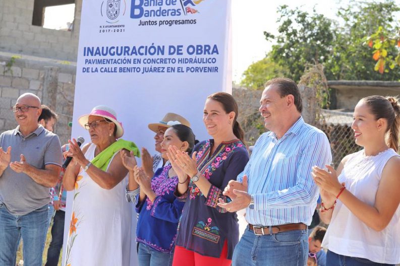 “Lo que realmente importa es la manera en que mejora las condiciones de vida de esta comunidad, cómo hace que aumente el valor del patrimonio familiar de los vecinos de esta vialidad, pero más importante es la parte que a ustedes les toca poner: conservar su obra en buen estado y limpia todo el tiempo”, expresó el Presidente Municipal de Bahía de Banderas, doctor Jaime Cuevas Tello, quien acompañado por su esposa, la Presidenta del DIF Bahía de Banderas, L.T.S. Ana Esperanza Berumen de Cuevas, cortó el listón de la nueva calle Benito Juárez en la comunidad de El Porvenir.