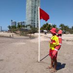 Por lo anterior, giró instrucciones a la subdirección de Protección Civil y Bomberos, cuyo personal se desplazó hacia estos lugares para colocar las banderas rojas y delimitar el acceso al mar a los paseantes, en toda la zona de playa que comprende desde la desembocadura del río Pitillal, hasta el hoyo 18 en Marina Vallarta.