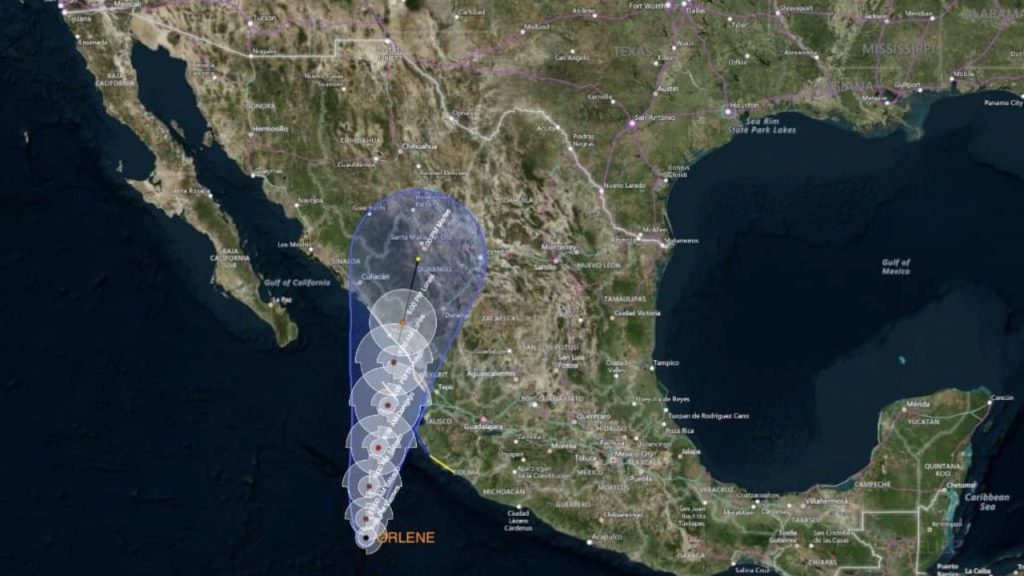 La Tormenta Tropical «Orlene», se convertirá a huracán categoría 1, en las próximas horas. Mientras eso sucede el fenómeno hidrometeolorógico define su trayectoria hacia el norte y avanza lento. Se ubicó a 542 km al sur-suroeste de San Blas, Nayarit.