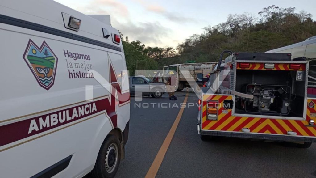 La mañana de este domingo se registró brutal choque de frente entre una camioneta y una pipa, sobre la carretera federal 200, a la altura de la zona conocida como El Palmarito, delante de El Guamúchil, en Bahía de Banderas.