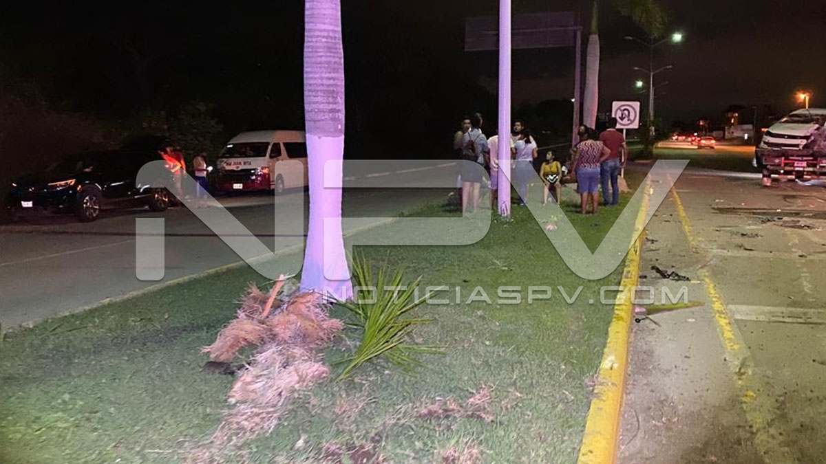 Brutal accidente se registró la noche de este sábado poco antes de la medianoche, sobre el boulevard Riviera Nayarit, a la altura de El Tizate, en donde se vieron involucrados un auto compacto y una camioneta, los cuales resultaron con daños considerables pero además hubo daños en el municipio.