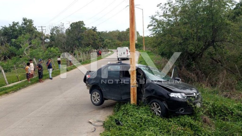Brutal accidente se registró por el camino a Paraíso Vallarta, en donde un auto compacto que era conducido en exceso de velocidad se quedó sin control y se estampó contra dos lámparas de luz, a las cuales les causó daños.
