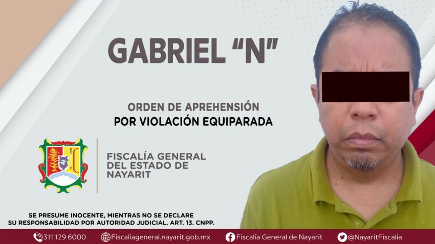 Comunicado.- En el municipio de Bahía de Banderas, elementos de la Agencia de Investigación Criminal dieron cumplimiento a una orden de aprehensión que se obsequió contra Gabriel “N”, por su probable participación en hechos que la ley califica como delito de violación equiparada, cometido en agravio de un menor de edad cuya identidad se reserva.