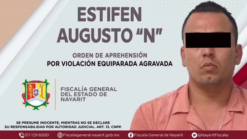 Comunicado.- En el municipio de Bahía de Banderas, elementos de la Agencia de Investigación Criminal dieron cumplimiento a una orden de aprehensión que se obsequió contra Estifen Augusto “N”, por su probable participación en hechos que la ley califica como delito de violación equiparada agravada, cometido en contra de una menor de edad cuya identidad se reserva.
