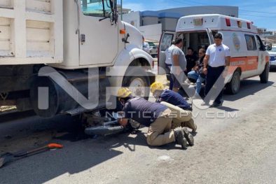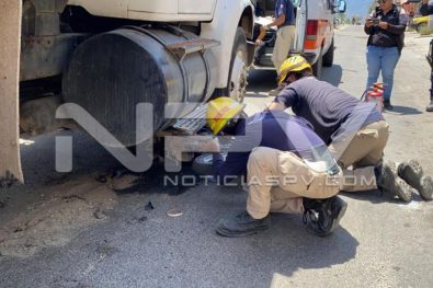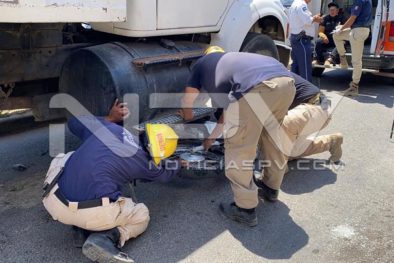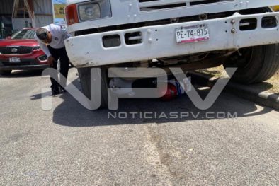 Los agentes se dieron cuenta de que en la parte de abajo del volteo se encontraba aplastada una motocicleta de la marca Honda, Cargo, modelo 2016, en color blanco, con placas del estado de Jalisco y a un costado se encontraba su conductora que dijo llamarse Sonia Rosario, de 34 años de edad, quien es vecina del poblado de San Vicente.