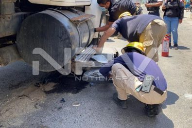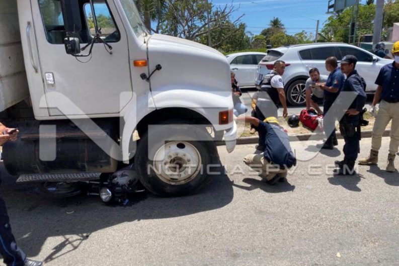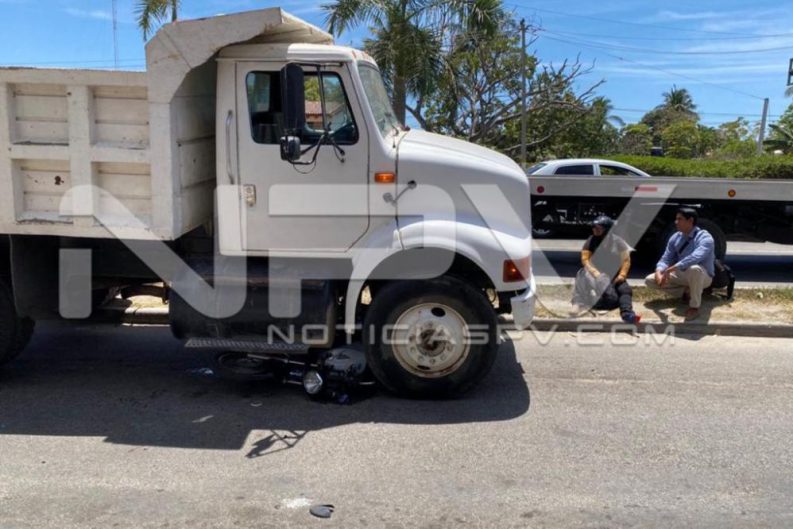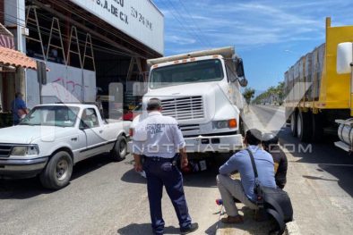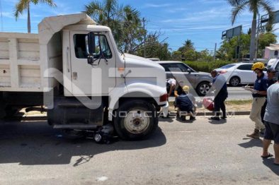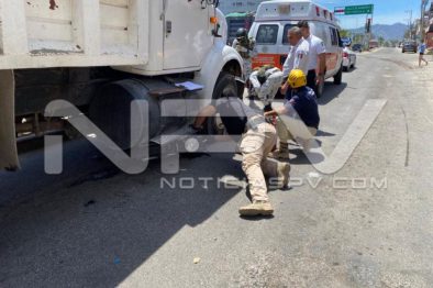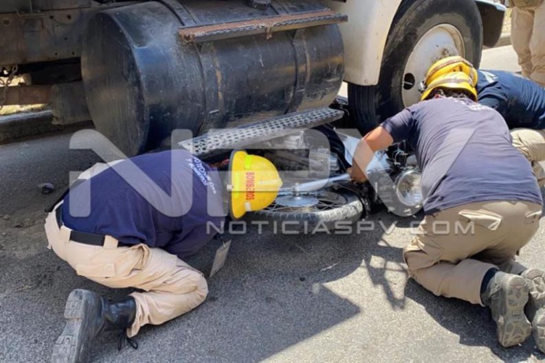 A menos de 24 horas de que se registrara un fatal accidente en el poblado de Bucerías, en donde perdió la vida un elemento de la Policía Estata, la tarde de este jueves se registró otro accidente similar en donde se vio involucrado un camión tipo volteo, mismo que atropelló, arrastró y aplastó a otra motocicleta, pero en esta ocasión afortunadamente su conductora resultó con lesiones leves.
