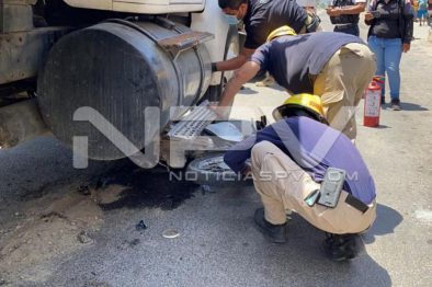 El accidente fue similar al sucedido la tarde del miércoles, donde murió aplastado un elemento de la Policía Estatal *En esta ocasión, la mujer que conducía la moto resultó solo lesionada, pero no de gravedad