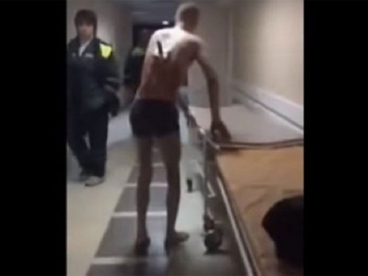 El hombre, identificado como Vladímir, fue llevado en estado ebrio al centro médico tras recibir una puñalada. El personal desvistió al herido para trasladarlo a la unidad de cirugía y entonces el individuo, vestido únicamente con ropa interior, se dirigió de repente hacia la puerta para salir a la calle.