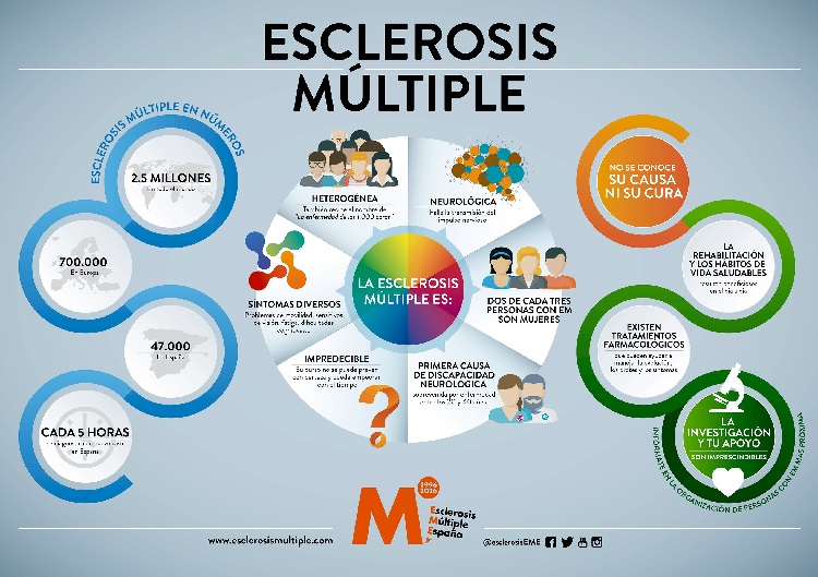 La esclerosis múltiple es un padecimiento autoinmune, es decir, se produce cuando el sistema de defensas desconoce la mielina y la destruye. Según la zona donde esto ocurra es la afectación que sufren las personas. Puede ser pérdida del equilibrio, de la sensibilidad y/o de fuerza, y alteraciones en la visión, entre otros.