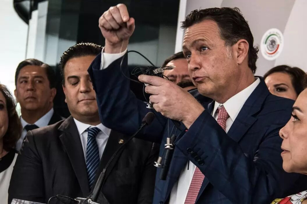 La bancada panista acusó ser víctima de espionaje en el Senado, mostrando micrófonos y cables que presuntamente estaban en sus oficinas.