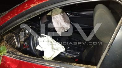 Se trata de una camioneta marca Mazda X3, en color tinto, la cual al circular en exceso de velocidad sobre la calle José Ponce y al ingresar al callejón de Los Algodones, se le terminó el camino y se estrelló contra el lienzo de un potrero, en donde terminó destrozada, resultando la pareja lesionada.