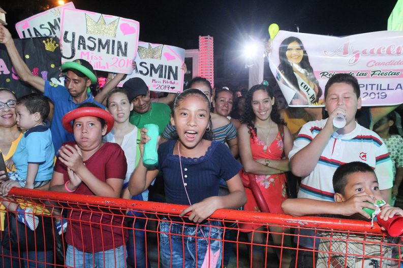 Karime Suhey Vargas Carlín y María Lizeth Peña Banco, fueron coronadas primera y segunda princesa, respectivamente, y Patricia Soleto Casas, “Reina Fiestas Patrias Pitillal 2019”.