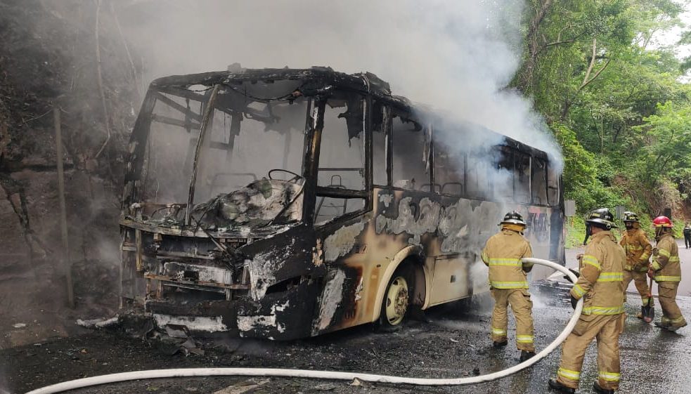 Al momento de arribar a la zona se encontró un autobús en libre y total combustión, por lo que con el uso de una motobomba se realizaron la acciones de sofocación, logrando extinguir las llamas en su totalidad. Se procedió a enfriar el autobús para prevenir el resurgimiento del incendio.