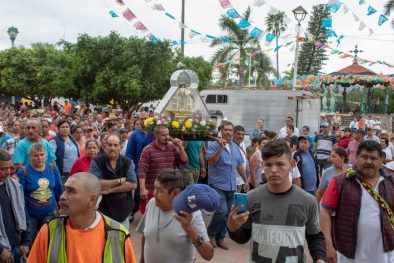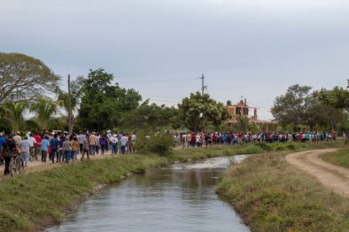 Entre brechas, cultivos y canales de riego, alrededor de más de 200 feligreses de San Juan de Abajo, en peregrinación salen de su comunidad para ir a celebrar a Nuestra del Rosario del Tintoque, patrona de Valle de Banderas, Bahía de Banderas, Nayarit. Por turnos, los varones portan en hombros a la Virgen Peregrina durante alrededor de 3 horas que dura el trayecto