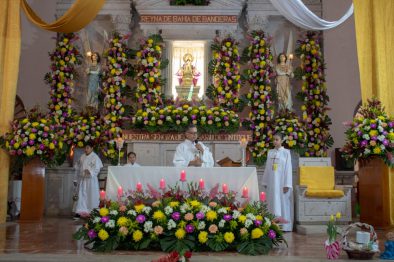 Alrededor de más de 200 peregrinos, entre hombres, mujeres y niños, arribaron a la iglesia de la Reina de Bahía de Banderas acompañando a los varones que cargan la imagen de la Virgen en sus hombros hasta llegar a la plaza publica de la comunidad donde tras un grupo de danzantes entran a la iglesia para saludar y festejar a Nuestra Señora del Rosario del Tintoque en este Día de la Candelaria.