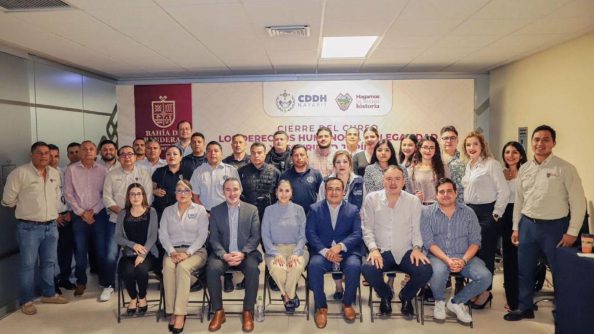 Por su parte la presidenta municipal Mirtha Iliana Villalvazo Amaya, felicitó a los participantes a este curso de Derechos Humanos, por su entera participación, pues juntos, este gobierno está escribiendo la mejor historia, cambiando el rumbo de la bahía, y para ello en el compromiso de los servidores públicos será ella siempre la primera en la fila para señalar a quien no respete, “pues para mí, para cambiar la historia, debemos empezar desde la casa”, puntualizó Mirtha Villalvazo en el evento protocolario, donde se entregaron los reconocimientos.