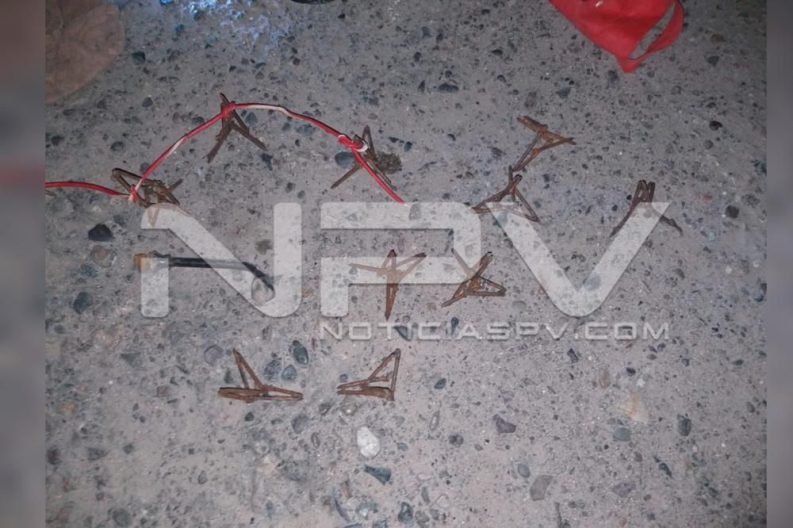 Eran dos sujetos a bordo de una motocicleta quienes iban tirándole clavos al convoy de la Guardia Nacional, siendo detenido uno de ellos cuando derraparon