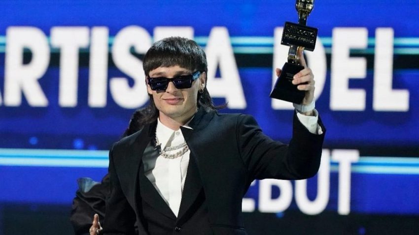 El astro mexicano de los corridos bélicos Peso Pluma se impuso en la categoría de artista del año, debut.