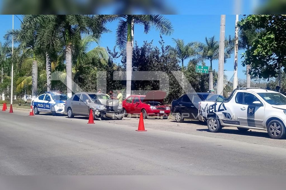 En un problema de caos vial y riesgo físico de conductores y sus vehículos se ha convertido el módulo de Verificación Vehicular ubicado a un costado del módulo de seguridad de Jarretaderas, Bahía de Banderas, Nayarit, y al pie de la carretera 200 donde esta mañana de jueves 28 de febrero 2019 se registró un accidente vial que involucró a 4 vehículos y un peatón, afortunadamente solo se registraron daños materiales y un gran susto a turistas extranjeros que iban a bordo de un taxi de la zona Flamingos de Nuevo Vallarta que fue el carro que se llevó los mayores daños al chocar de frente contra otro vehículo que le corto la circulación al tratar de evadir atropellar a un peatón que en esos momentos, como a las doce horas, cruzaba hacia dicho módulo.