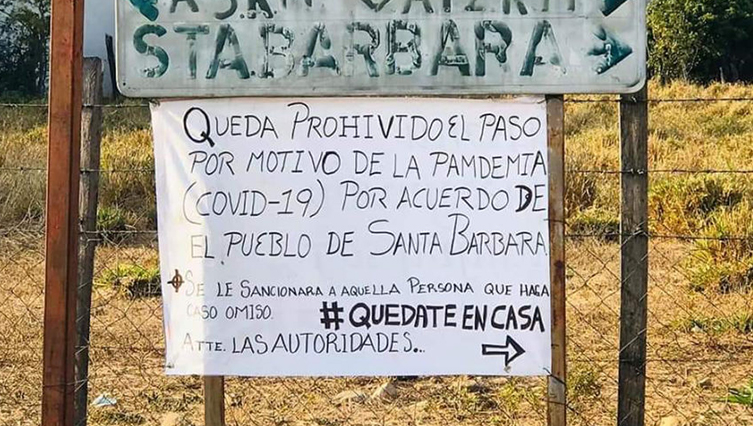 “Queda prohibido el paso por motivo de la pandemia, (covid-19), por acuerdo del pueblo. #QuédateEnCasa. Persona que no respete el acuerdo será sancionada con 5 y 10 mil pesos. Atte. Las autoridades”, refiere una imagen difundida por los mismos habitantes en redes sociales.