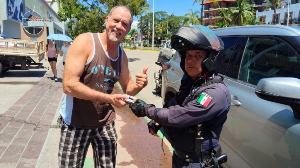 Un acto de honestidad y profesionalismo se vivió en Puerto Vallarta cuando un oficial de la Policía Municipal devolvió una cartera extraviada a su dueño, Joseph Clifton, un ciudadano extranjero.
