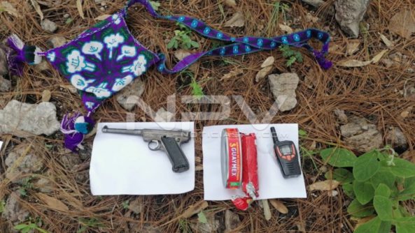 Los sujetos fueron perseguidos, siendo asegurados en el lugar; un morral en color morado con blanco, que contenía en su interior un radio de la marca Cobra en color negro, un arma de fuego tipo escuadra, marca Ruger MK, calibre 22 milímetros, 4 cartuchos útiles al calibre.