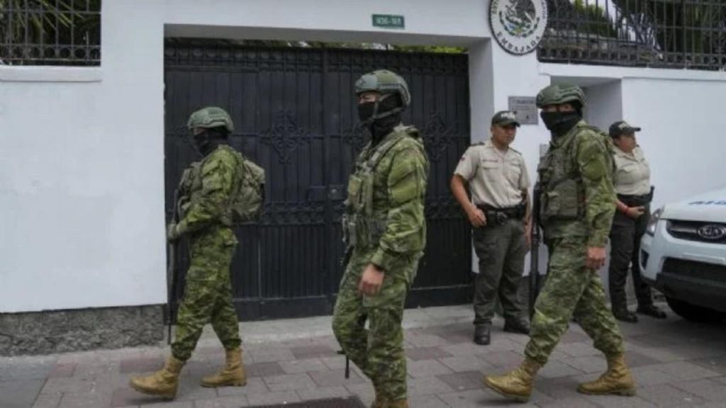 Los policías, que llegaron en vehículos negros, rompieron las puertas externas de la sede diplomática mexicana en el norte de la capital ecuatoriana y accedieron a los patios.
