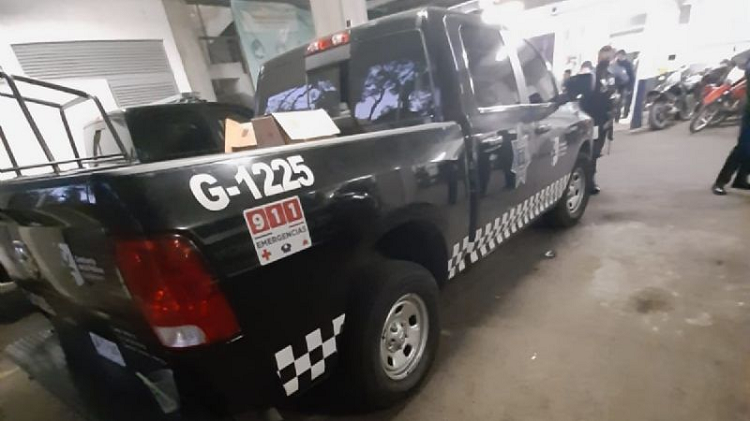 Los policías también presentaron fotografías donde se observa que la patrulla con el número económico G-1225 trae varias cajas de cartón, según ellos contenían vitropiso.