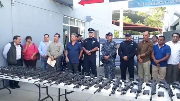 En el evento, el encargado de seguridad pública municipal, Vicente Bustamante, manifestó que se recibe el armamento retenido de las autoridades encargadas de la investigación del caso Ayotzinapa, “hechos lamentables que no deberán volver a ocurrir” y que le corresponde ponerlo al servicio de la comunidad, velando que el “personal en servicio le dé el uso adecuado”.
