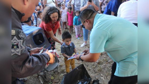 Al respecto el capitán Muñoz Ortega, comentó que “nosotros nos coordinamos con la regidora Sara Mosqueda para traerles a los niños de estas colonias, una sonrisa, porque la sonrisa de un niño no tiene precio y no hay nada como eso. De corazón lo hacemos, para que vean al policía de otra forma, queremos que el policía sea amigo de los ciudadanos, tenemos la instrucción del Profe Michel de tener más acercamiento social con la población y vamos a trabajar en ese sentido”.