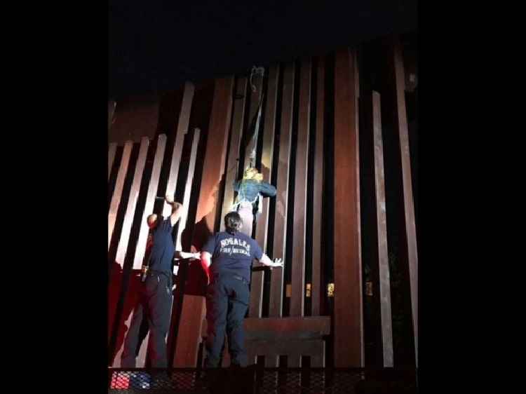 A su arribo, los elementos de la Patrulla Fronteriza de EU atendieron a la afectada y pidieron ayudar al Departamento de Bomberos de Nogales para bajarla de la valla de la que colgaba a 15 pies.