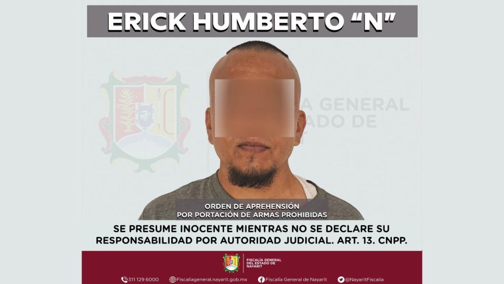 Elementos de la Agencia de Investigación Criminal de la Fiscalía General del Estado de Nayarit, lograron la captura de Erick Humberto “N”, quien era buscado por su presunta participación en hechos que constituyen el delito de portación de armas prohibidas, en agravio de la sociedad.