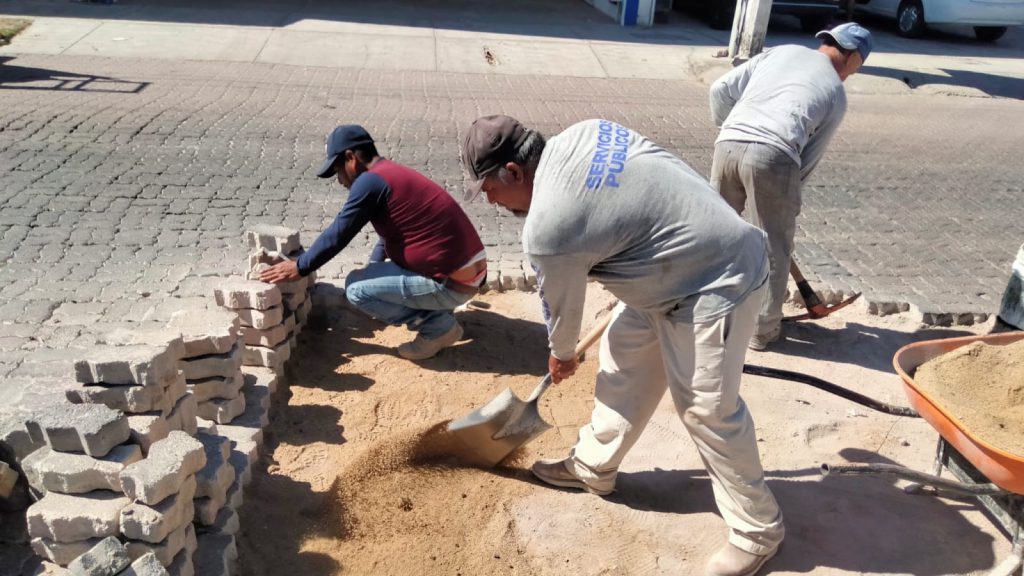Asimismo, se emprendieron acciones de bacheo en suelo cemento en las calles Vicente Guerrero y Juárez, de la colonia Centro y en Pavo Real, en la colonia Los Sauces; en piedra ahogada en cemento en calle Camichín de la colonia Buenos Aires; al igual que en Francisco I. Madero, Pino Suárez y Lázaro Cárdenas, en Las Juntas; Analco y Candelaria en Barrio Santa María; trabajos en adoquín en las avenidas Los Tules y Francisco Medina Ascencio, además de bacheo en asfalto en la calle 10 de Mayo, de la colonia 12 de Octubre.