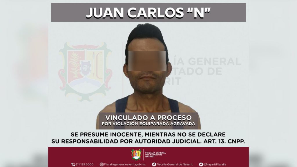 Comunicado.- En una audiencia celebrada en el Centro Regional número V del municipio de Bahía de Banderas, la Fiscalía General del Estado obtuvo por parte de un Juez de Control auto de vinculación a proceso contra Juan Carlos “N”, por su probable responsabilidad penal en hechos que según la ley configuran el delito de violación equiparada agravada, cometido contra un niño cuya identidad es reservada.