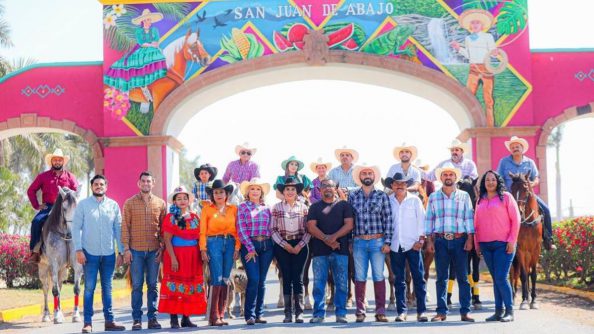 Se presentó el Mural que ha vestido de color, tradición y folklor a los bellos y tradicionales Arcos que se encuentran al entrar a la localidad de San Juan de Abajo, donde a partir de esta mañana este pueblo reconocido por sus tradiciones, calles empedradas, su gente a caballo y las escaramuzas, así como su escénica cultural; ahí es donde hoy se puede apreciar el trabajo del muralista Ramón Escobedo, quien plasma tradiciones de San Juan de Abajo.