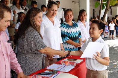 “Si se preguntan porque les cuento esto, es para decirles que si ustedes se lo proponen, no hay barreras, ni obstáculos que les impidan superarse y lograr una carrera profesional. Así como hoy los veo alegres culminando su primaria, me gustaría que en unos años más me compartan que finalizaron su secundaria, su preparatoria y la universidad. Será un privilegio ver más adelante, a cada uno de ustedes convertidos en unos profesionistas; recuerden que son el presente y el futuro de Puerto Vallarta”, agregó Candelaria Tovar.