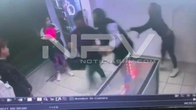 En el momento que la empleada les indica que se retiren del lugar, el funcionario no duda en dar una bofetada a la empleada, misma que inmediatamente busca defenderse, pero es retenida por una mujer y luego por el mismo agresor que finalmente fue echado a empujones fuera del local.