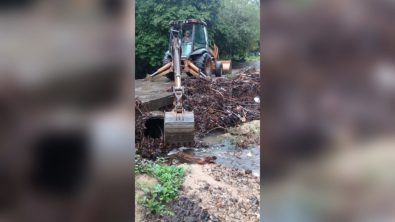 “Para valorar la cantidad de material y la ubicación del bloqueo del arroyo que cruza el poblado y evitar mayores daños, se solicitó apoyo a la Dirección de Servicios Públicos Municipales, con lo que al mediodía de este jueves, elementos y maquinaria de esa dependencia, removieron ramas y material que arrastró la corriente y evitar mayores complicaciones en las siguientes tormentas”, comentó el funcionario público.