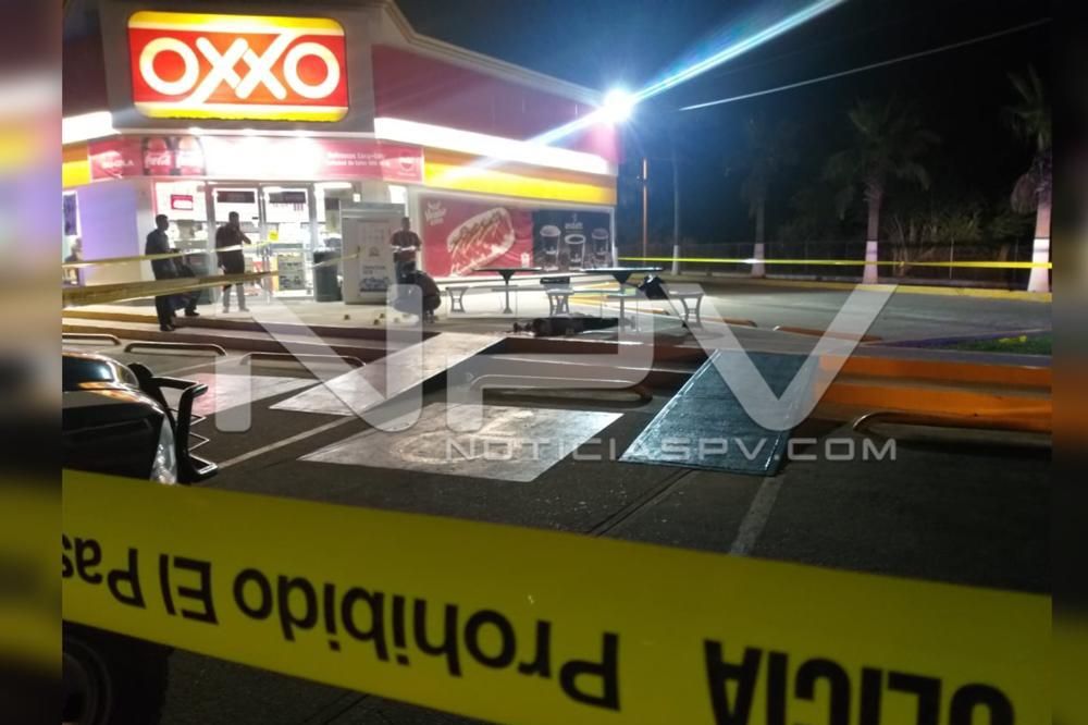 Una persona del sexo masculino fue asesinado a balazos en las afueras del Oxxo ubicado al ingreso a Mezcalitos y Nuevo Vallarta, en Bahía de Banderas, quien quedó tirado en un charco de sangre con el menos tres impactos de bala en la cabeza