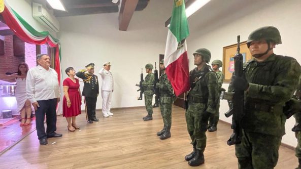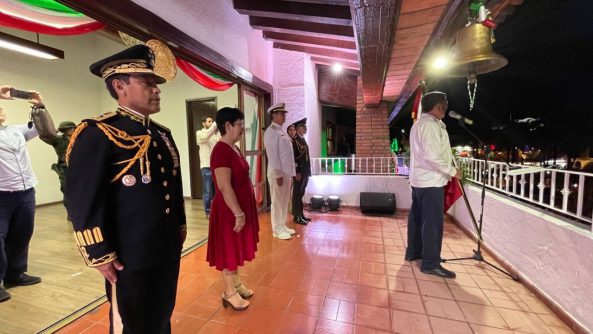 Tras ser abanderado por elementos del Ejército Mexicano en este evento que revive nuestra historia y hace vibrar los corazones de todos los mexicanos, el Profe Michel salió al balcón de Secretaría General en el Palacio Municipal en punto de las once de la noche, para honrar y recordar a los héroes que dieron patria y libertad a esta nación, cuando el cura Hidalgo tocara la campana dando inicio al movimiento de Independencia a nuestro pueblo mexicano.