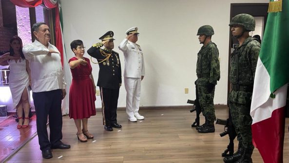 El Profe Michel estuvo acompañado por el comandante de la 41ª Zona Militar, General de Brigada D.E.M. Sergio Ángel Sánchez García; el Vicealmirante D.E.M. Fernando Ríos Sosa, comandante de la XII Zona Naval; el Capitán Segundo de Infantería Héctor Manuel Aguirre Cruz, Comandante de la Guardia Nacional en Puerto Vallarta, y María de Jesús López Delgado, presidenta del Sistema DIF Municipal.