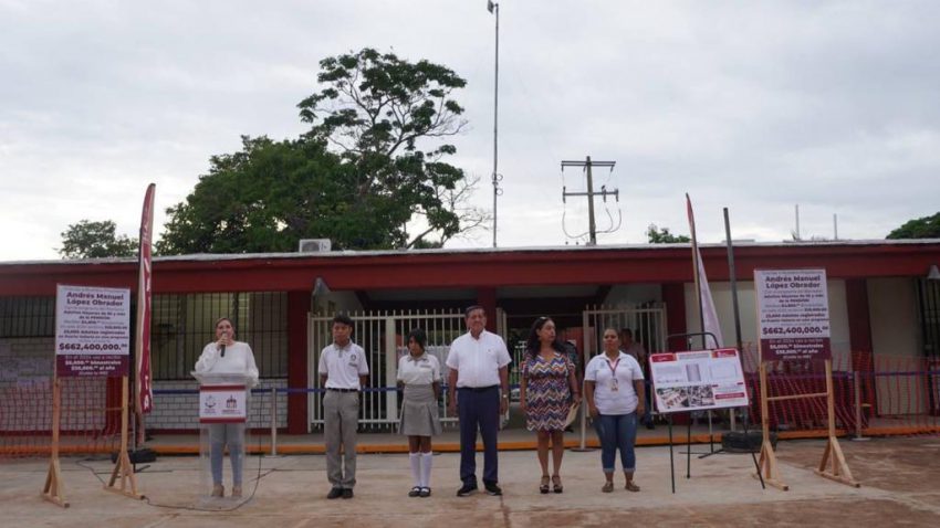 Este lunes puso en marcha la construcción de un domo en el patio cívico de la Secundaria Técnica 132, en la colonia El Mangal