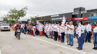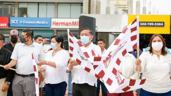 Acompañado de ciudadanos beneficiados por la obra pública, el alcalde de Puerto Vallarta, profesor Luis Alberto Michel Rodríguez, así como regidores, el delegado de Las Juntas, José Alfredo Cortez Palomera y el director de obras públicas, Elihú Sánchez Rodríguez, dieron el banderazo de inauguración a la primera etapa del Dren Pluvial Las Juntas, obra que permitió a partir de este viernes 24 de junio, reabrir a la circulación los carriles que habían sido desviados por la obra sobre la carretera federal 200, en el sentido hacia Nayarit poco antes del puente sobre el Río Ameca.