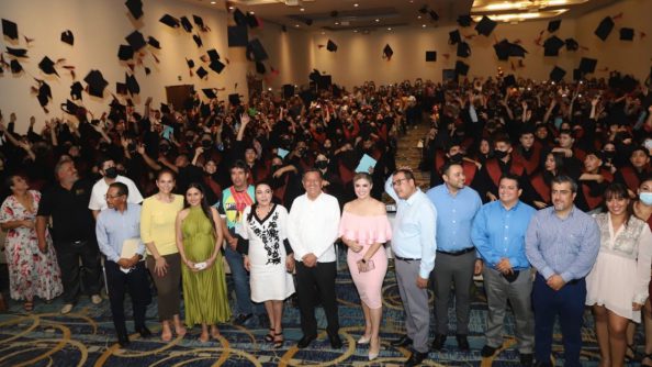 “Estoy seguro que les quedarán grandes recuerdos, de sus compañeros, de sus maestros, la alegría de haber terminado sus estudios del nivel medio superior. A ustedes padres de familia, les digo que sigan apoyando a sus hijos rumbo a la educación superior, cada quien se forjará su propio destino en función a su preparación”, agregó el presidente municipal.
