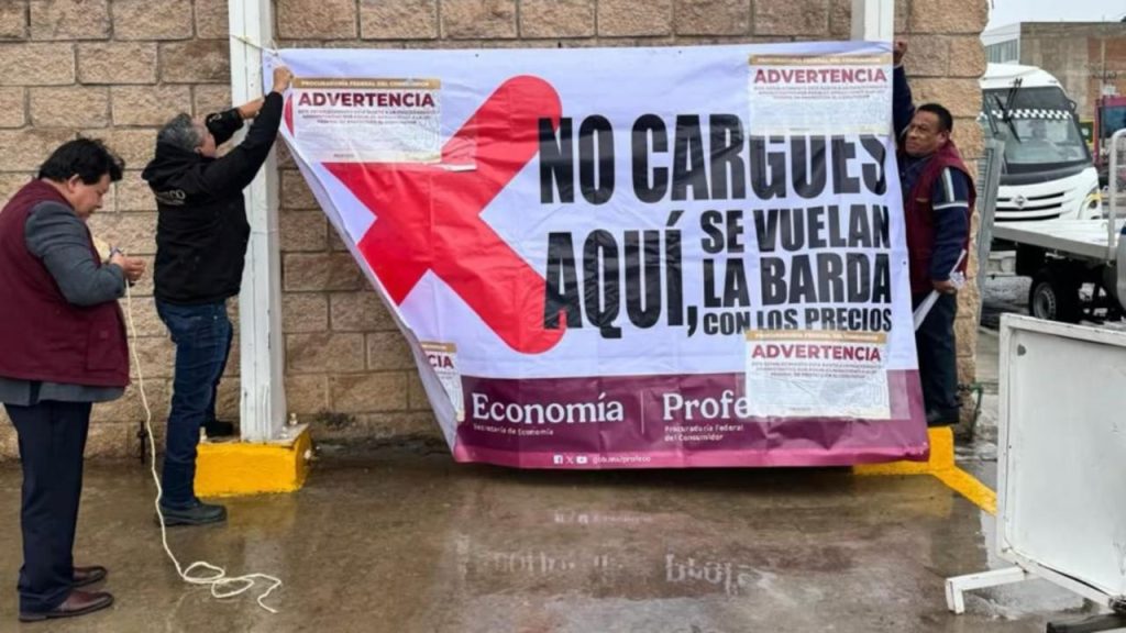 La Procuraduría Federal del Consumidor (Profeco) colocó sellos de advertencia y lonas con la frase ‘No cargues aquí, se vuelan la barda con los precios’ en al menos tres gasolineras del país.