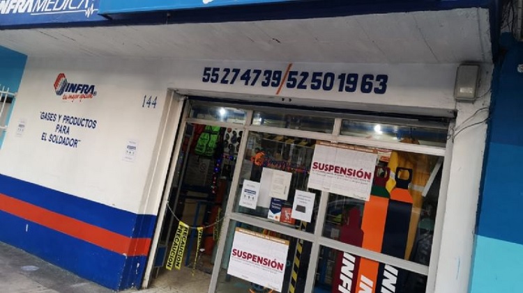 La Profeco suspendió un establecimiento proveedor de oxígeno ubicado en la colonia Anáhuac de la CDMX por vender el producto a sobreprecio y por hacerse pasar como parte de la empresa Infra.