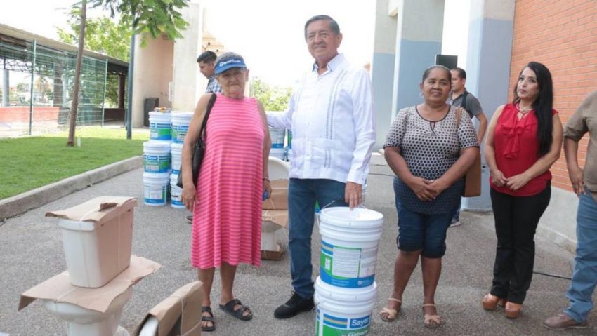 En representación de los beneficiarios, la señora Armida Lozano Gallardo, vecina de la colonia Magisterio, expresó “estamos agradecidos con el Profe que nos ha apoyado y esperemos que nos siga apoyando”. Posteriormente, se realizó la entrega simbólica de materiales, los cuáles fueron recibidos por María Victoria Miramontes Torres y Gonzala Sandoval Marcial, quienes cuentan ya con un juego de baño y cubetas de pintura, para la mejora de sus hogares.